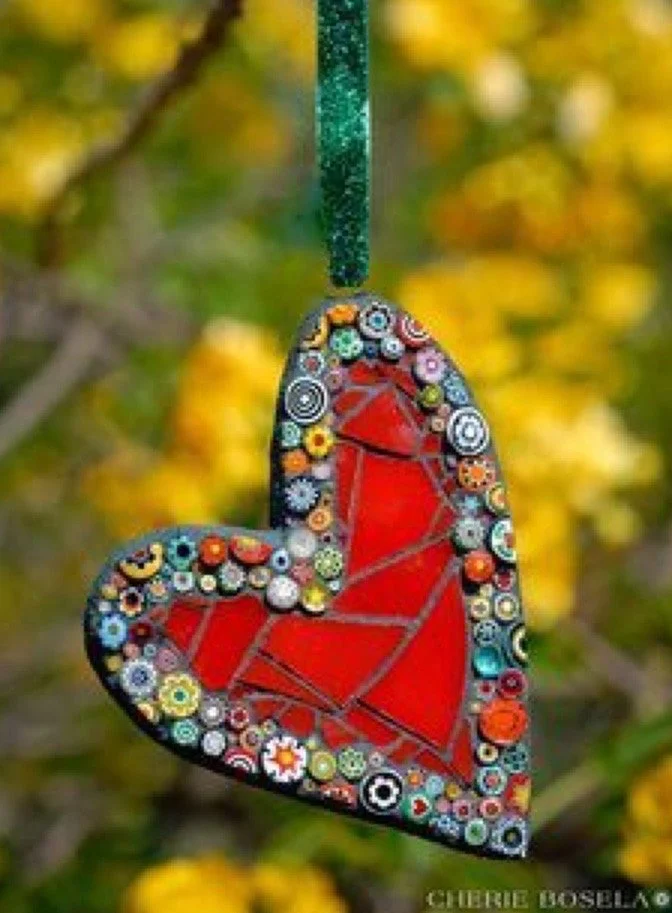 Join us in creating three glass mosaic ornaments to add to your special Christmas collection. These ornaments can be framed or hung on the tree.