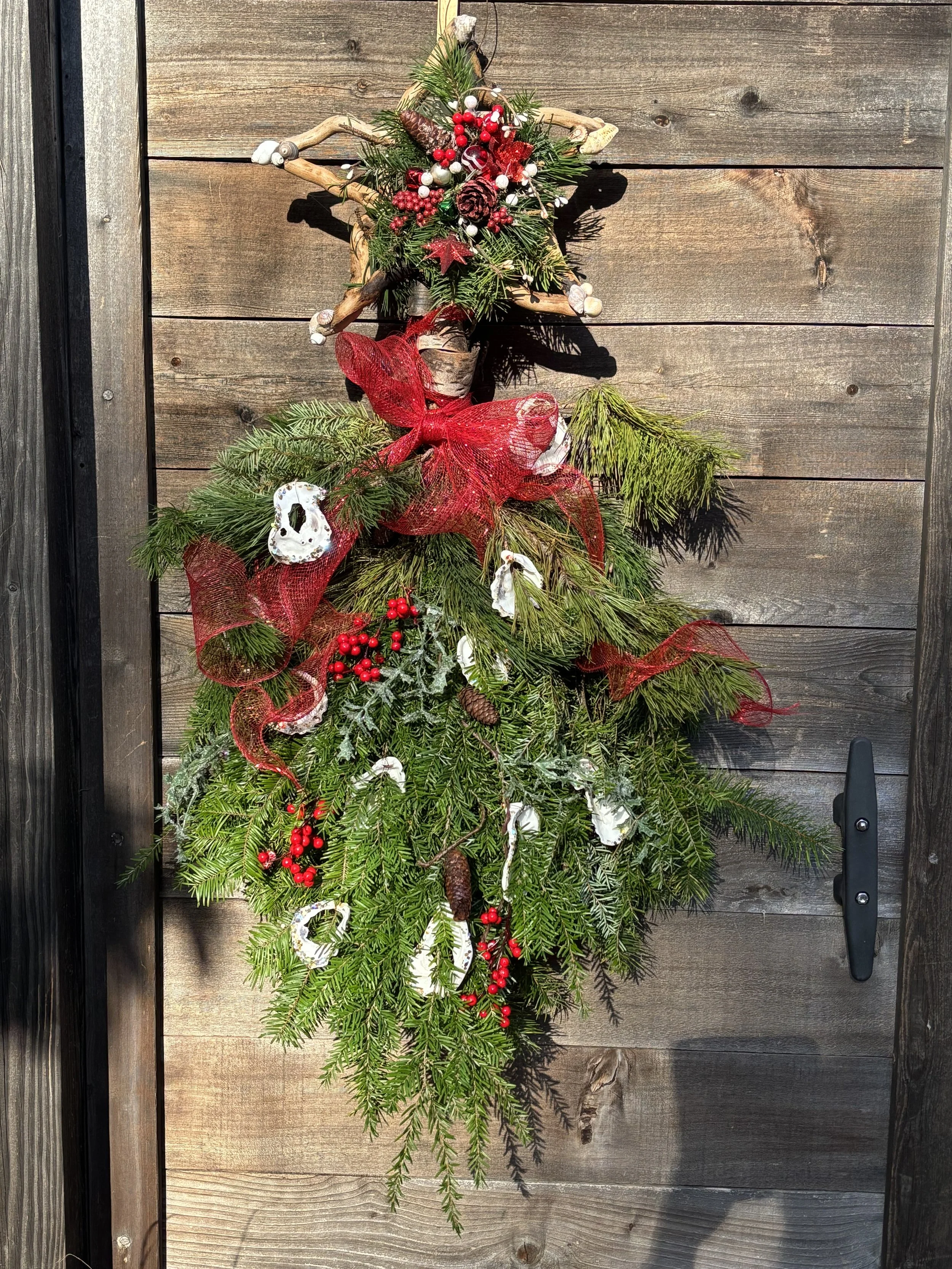 Gather a collection of Christmas greens to create your DIY bough, topped off with a driftwood star. This piece of seasonal decor will rival anything found at Homesense and will incorporate your unique customizations.